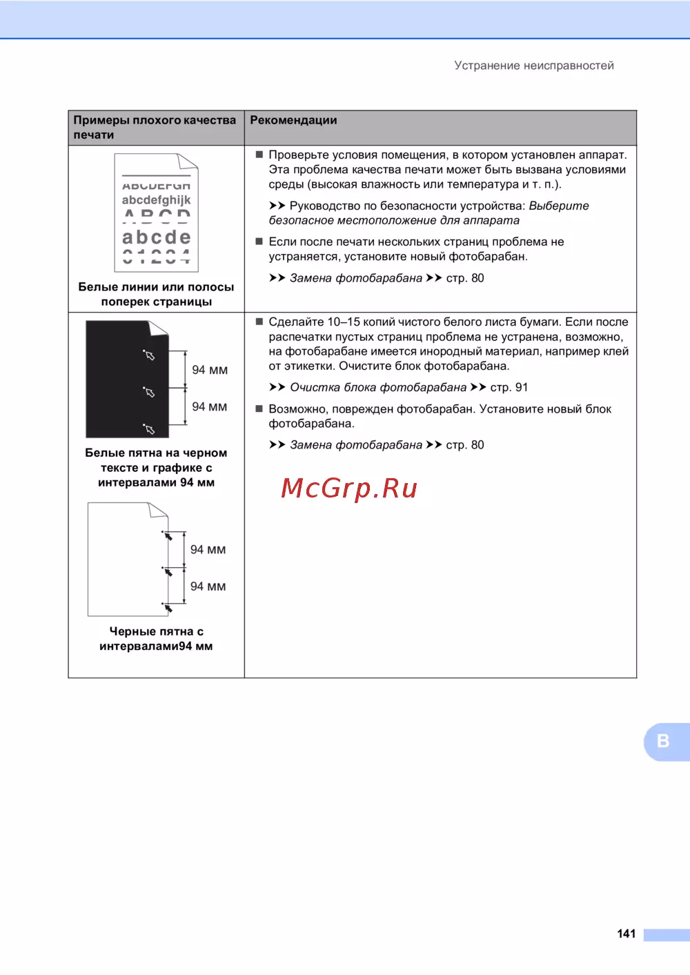 Узнайте, как устранить проблемы с качеством печати, включая белые линии и пятна. Следуйте рекомендациям по очистке и замене фотобарабана для улучшения результатов.