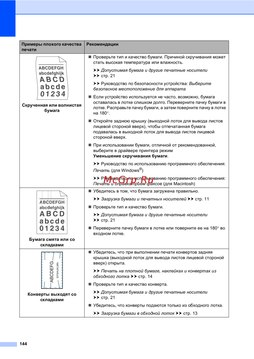 Brother MFC-8510DN — решение проблем со скручиванием и складками бумаги при печати [154/206]
