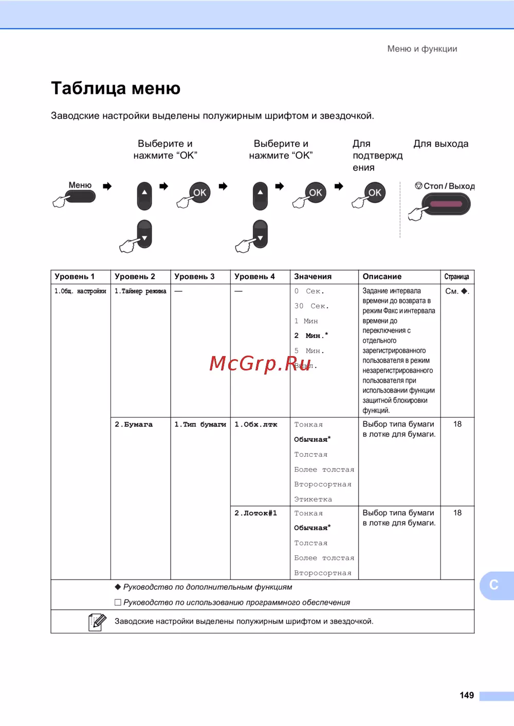Brother MFC-8510DN — обзор меню и функций устройства: настройки и параметры [159/206]