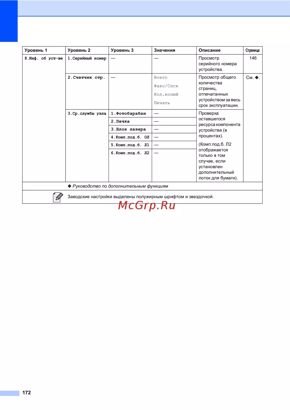 Brother MFC-8510DN — информация об устройстве: серийный номер и ресурсы компонентов [182/206]
