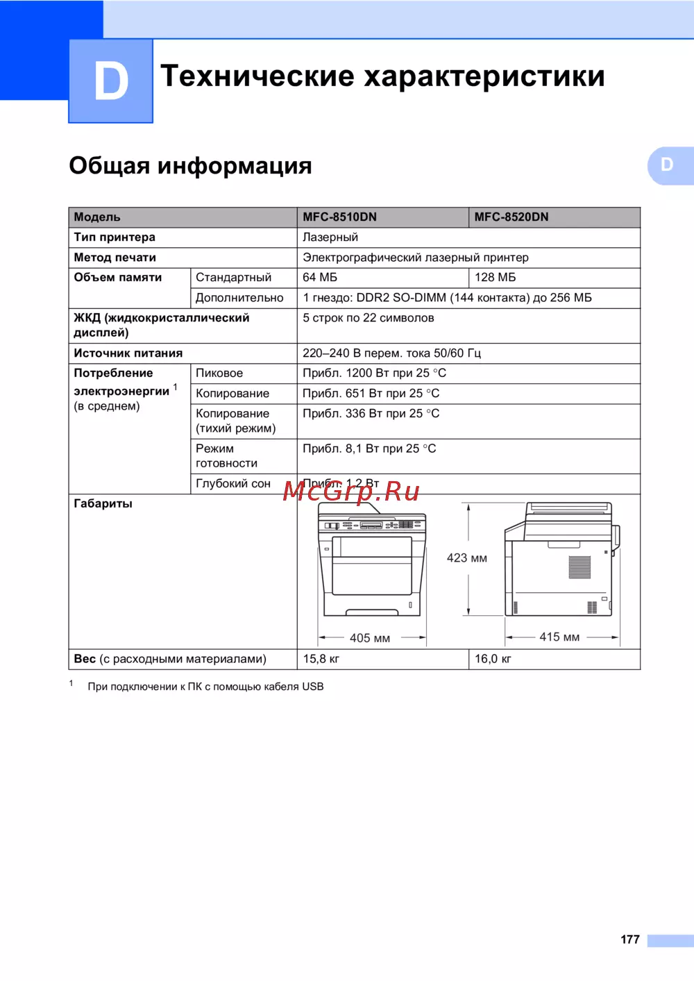 Brother MFC-8510DN — технические характеристики лазерных принтеров и их особенности [187/206]