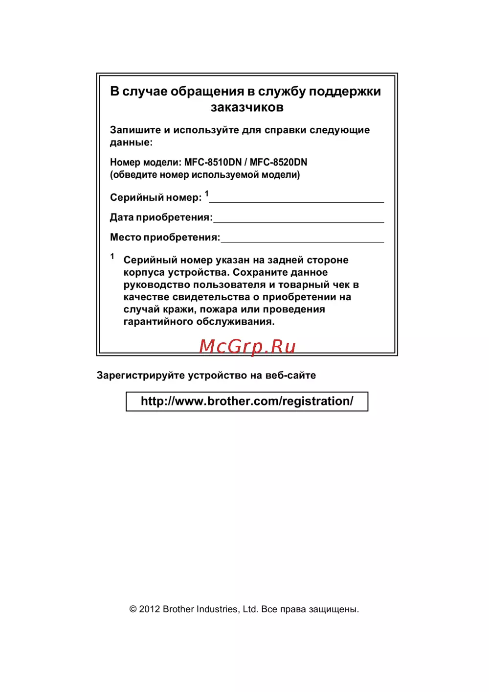 Brother MFC-8510DN — как правильно зарегистрировать устройство и обратиться в поддержку [2/206]