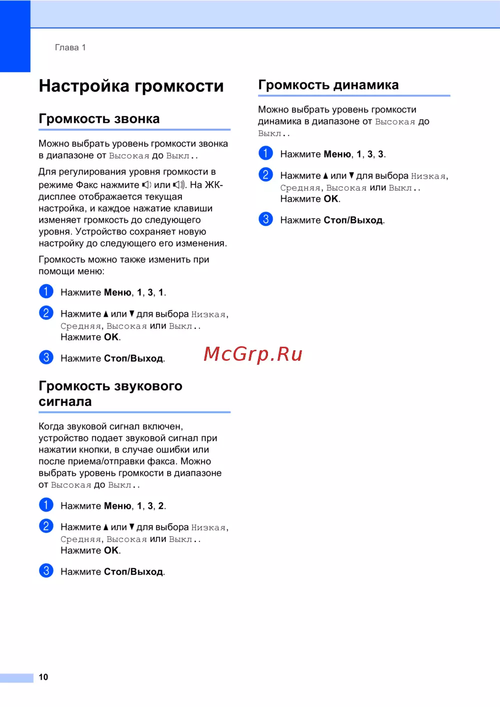 Brother MFC-8510DN — настройка громкости и звуковых сигналов устройства [20/206]