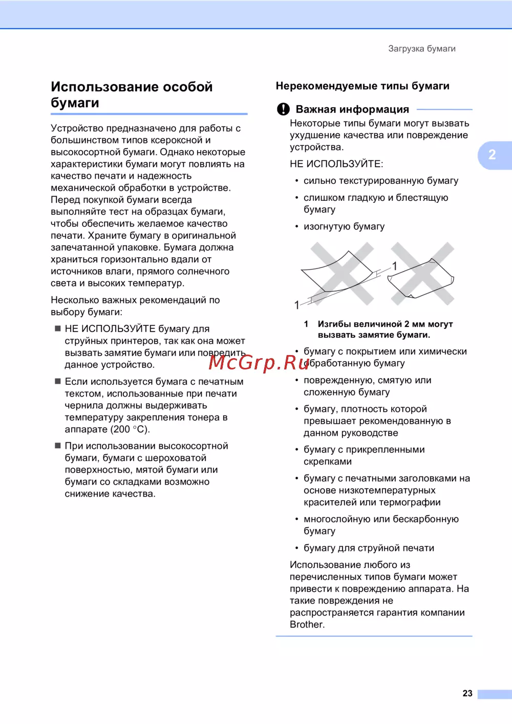 ![Brother MFC-8510DN [33/206] Нерекомендуемые типы бумаги](/views2/1469321/page33/bg21.png)