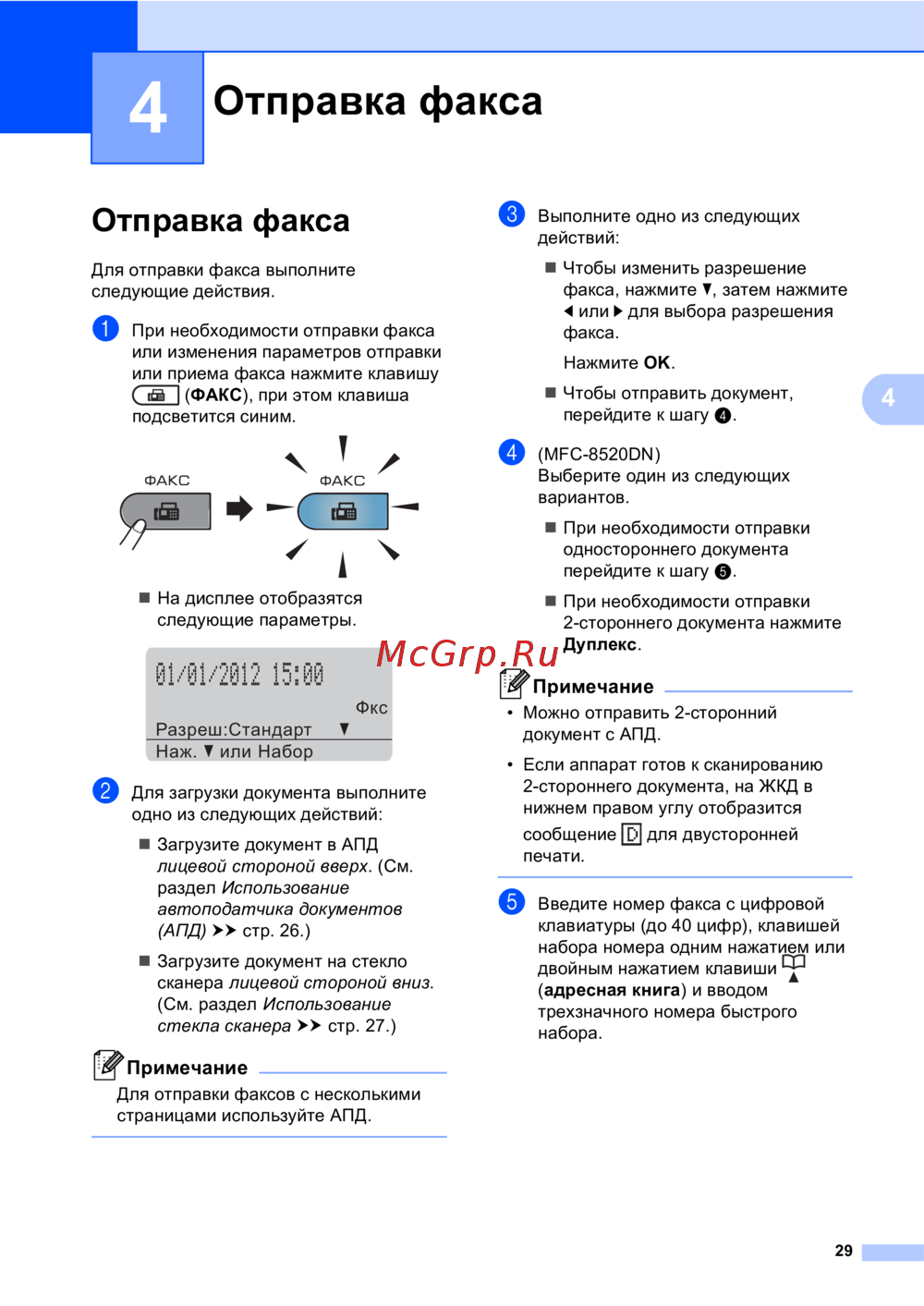 Brother MFC-8510DN — инструкция по отправке факса: подробное руководство с пошаговыми действиями [39/206]