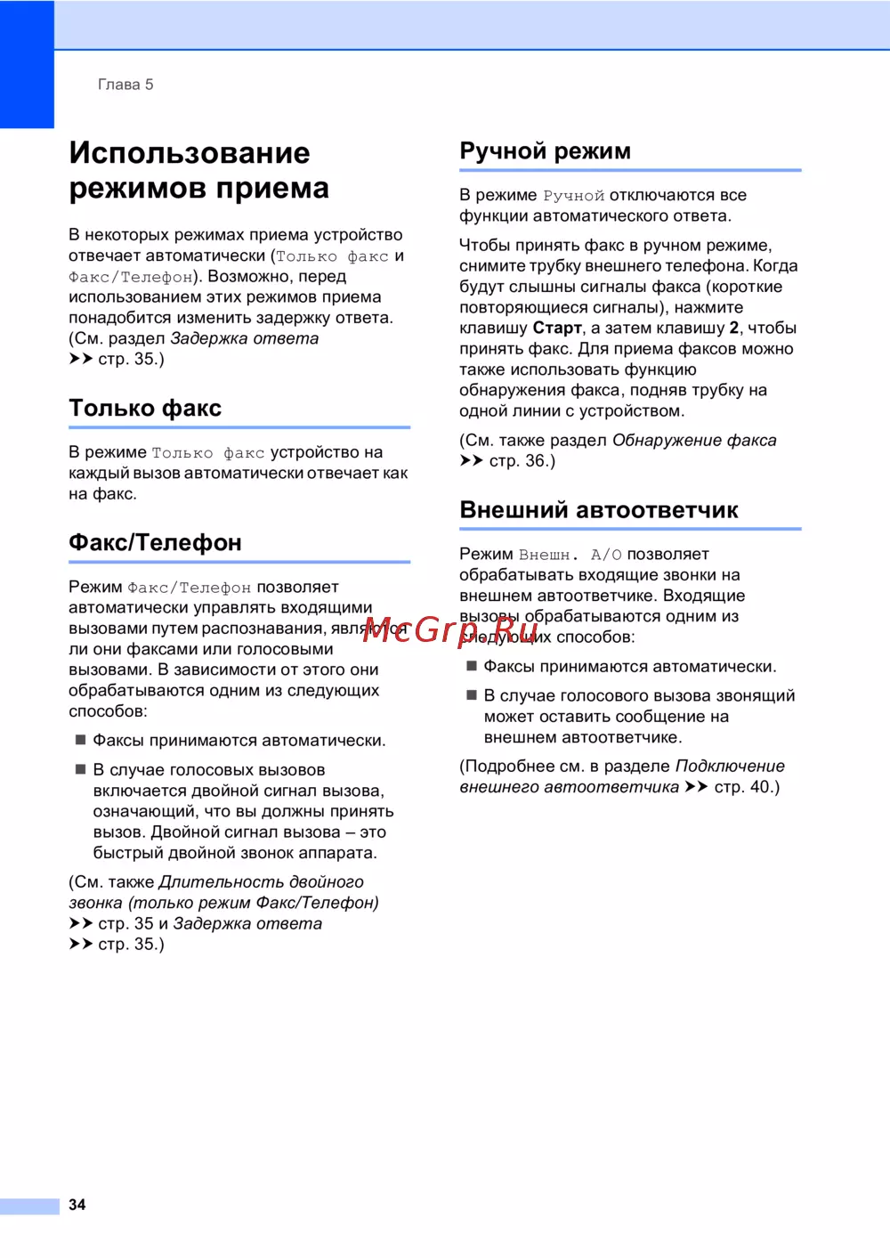 Brother MFC-8510DN — режимы приема факсов и голосовых вызовов: руководство пользователя [44/206]