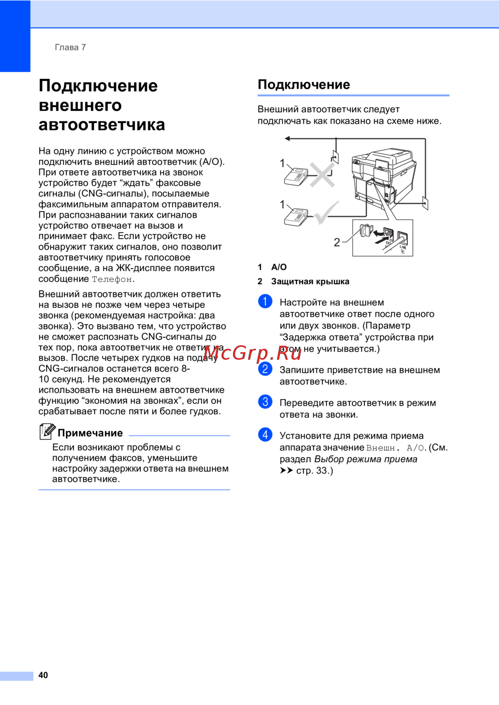 Brother MFC-8510DN — подключение внешнего автоответчика для факсового устройства [50/206]
