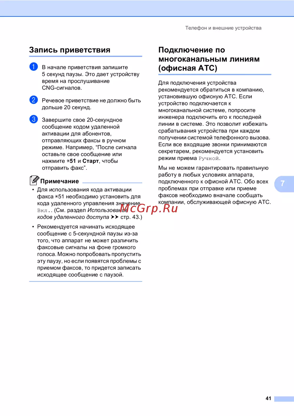 Brother MFC-8510DN — запись приветствия и подключение к офисной АТС [51/206]