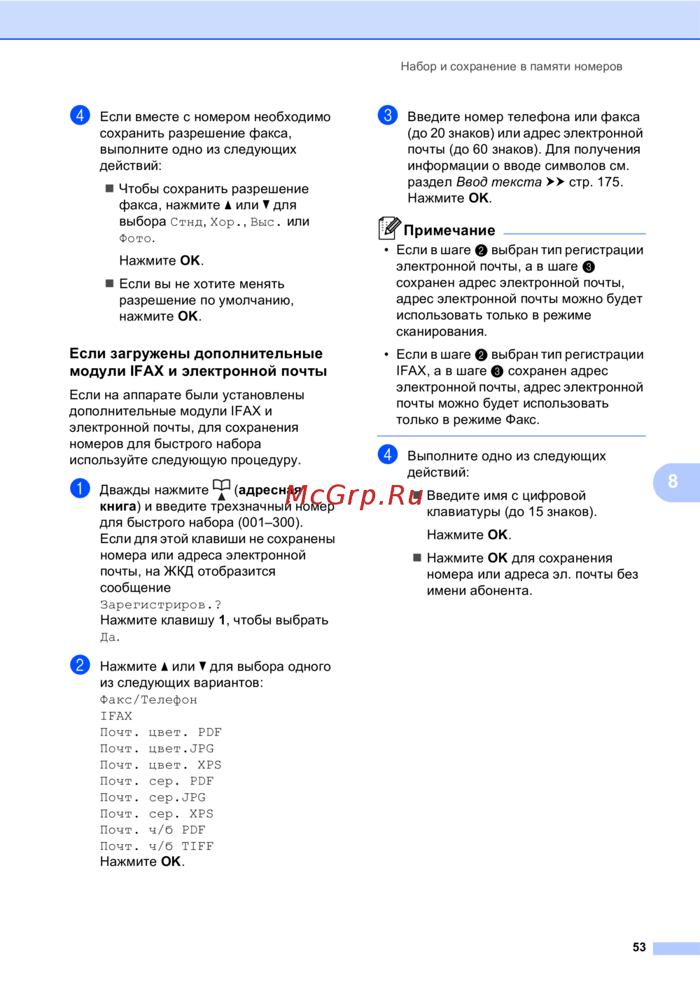 Brother MFC-8510DN — инструкция по сохранению номеров и разрешений факса [63/206]