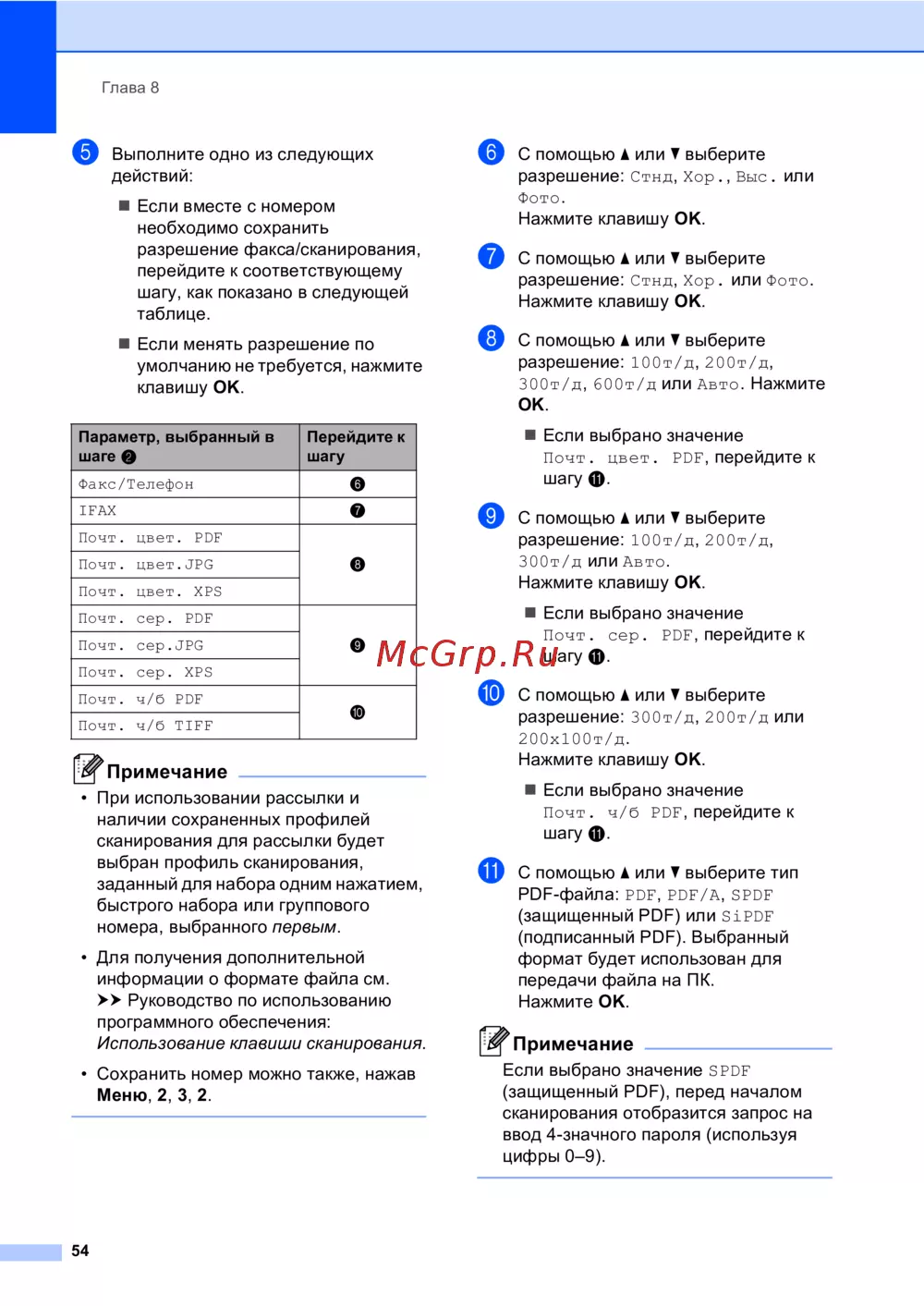 Brother MFC-8510DN — настройка разрешения для факса и сканирования: пошаговое руководство [64/206]