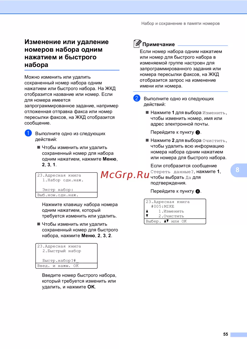 Brother MFC-8510DN — как изменить или удалить номера быстрого набора и набора одним нажатием [65/206]
