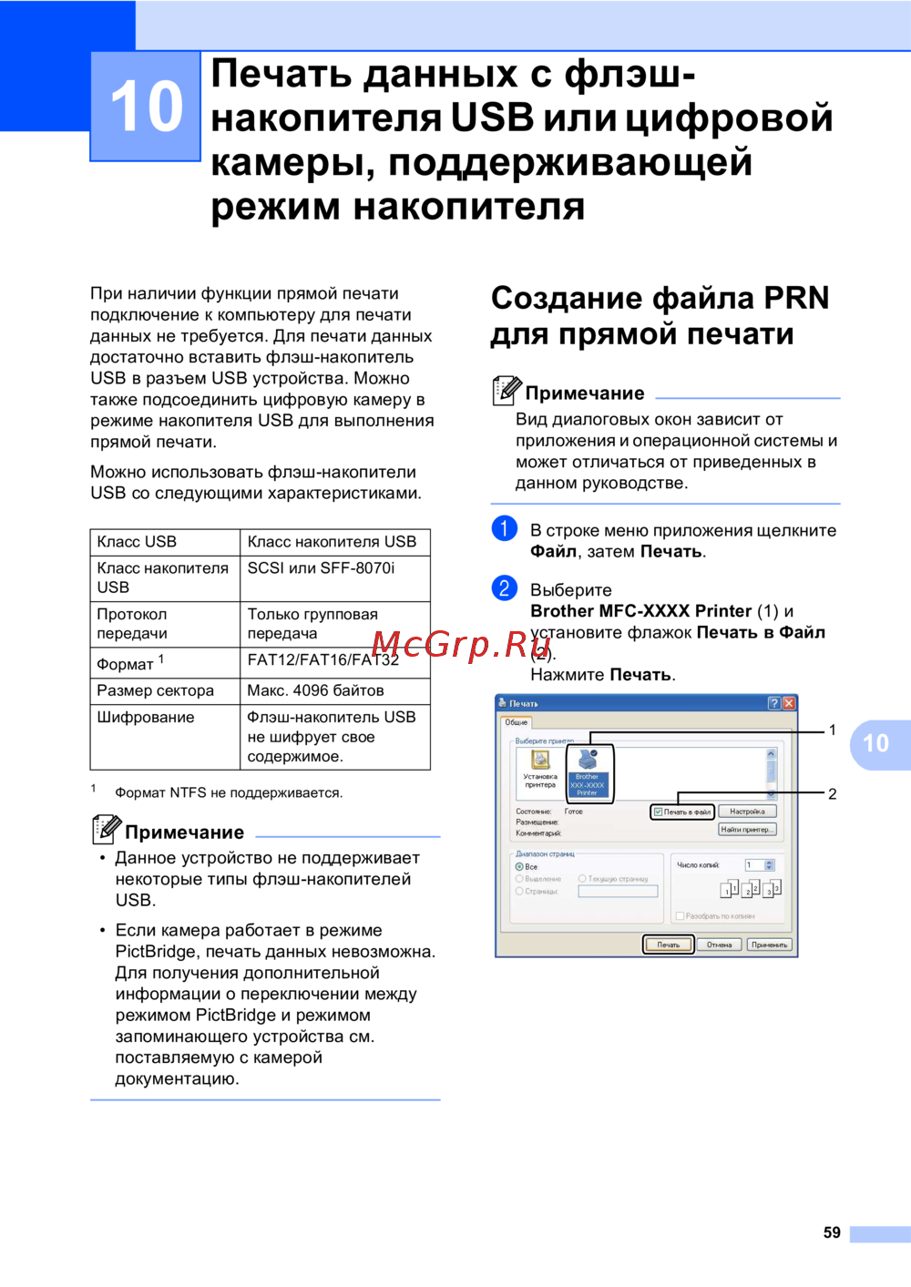 - Печать данных с флэш накопителя usb или цифровой камеры поддерживающей режим накопителя 59 p.7