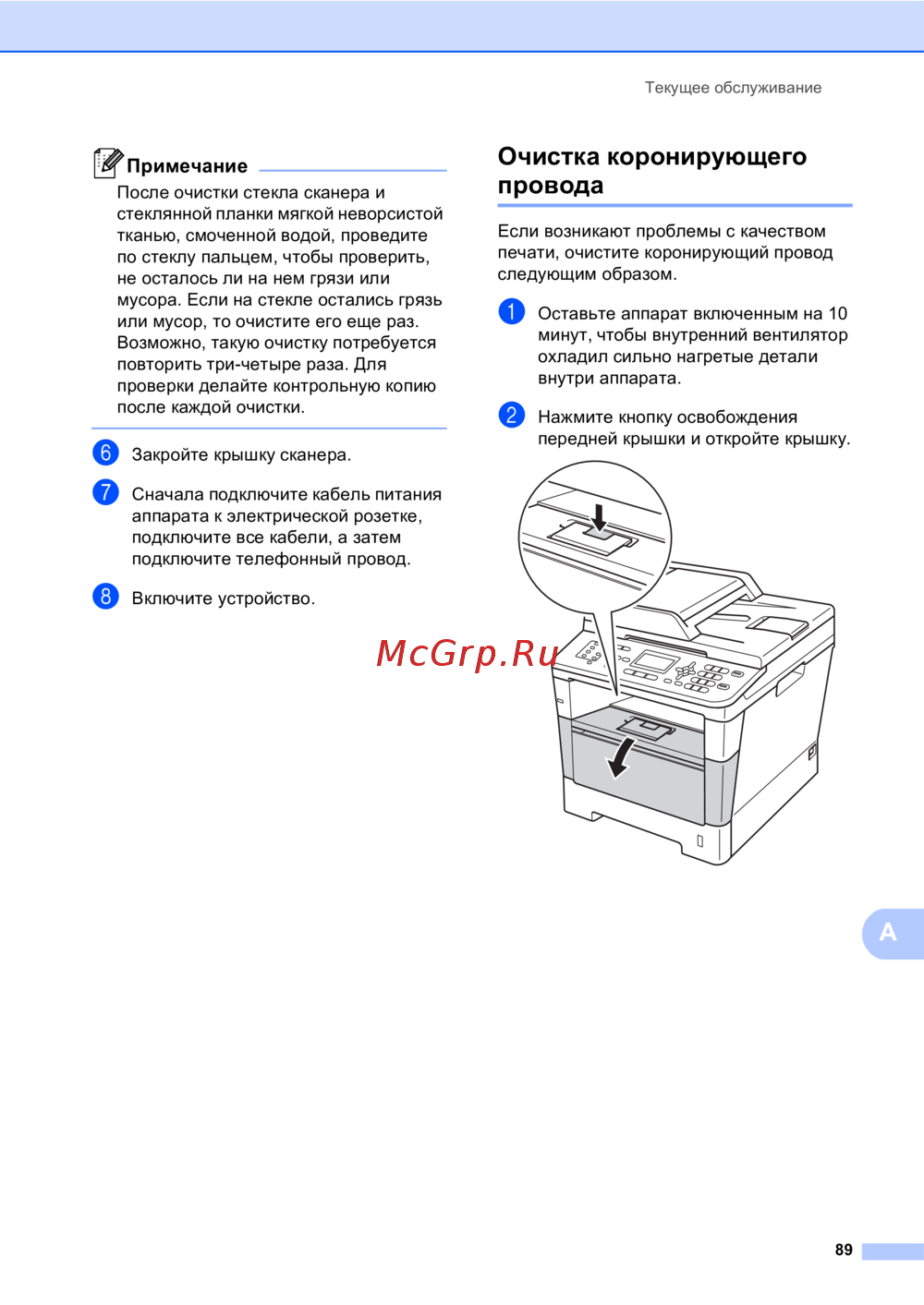 Brother MFC-8510DN — рекомендации по обслуживанию сканера и очистке деталей [99/206]