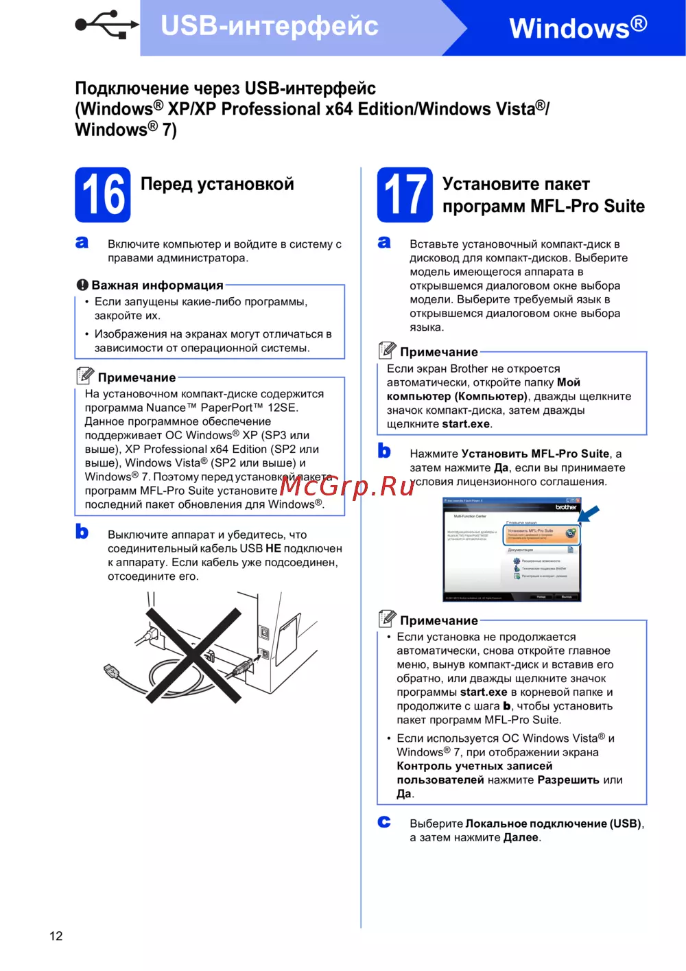 Brother MFC-8510DN — инструкция по установке USB-интерфейса для Windows [12/24]