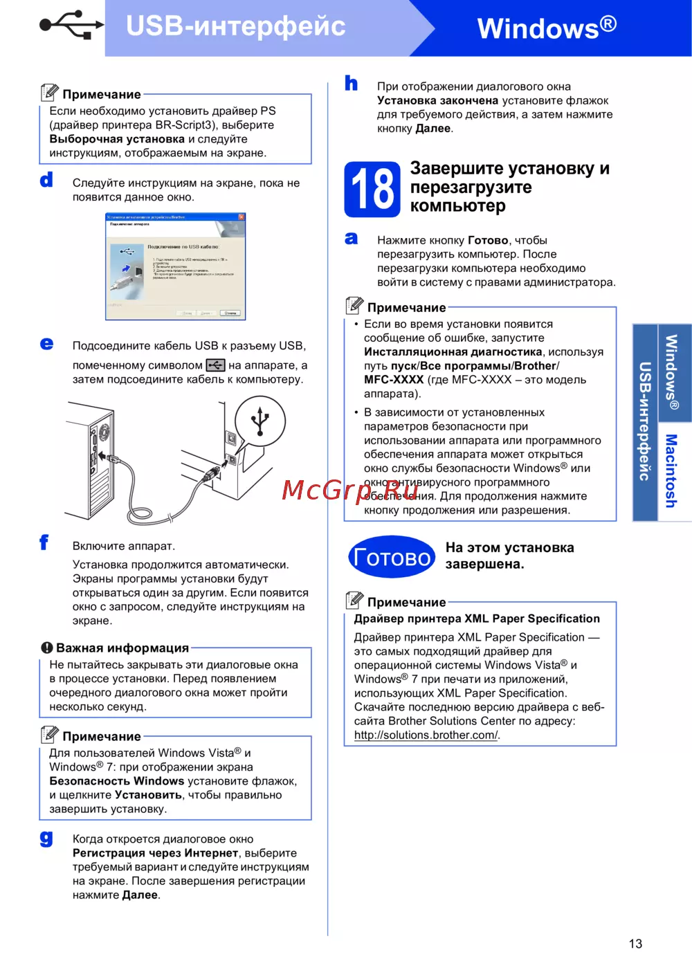 Brother MFC-8510DN — инструкция по установке USB-драйвера для Windows и Mac [13/24]