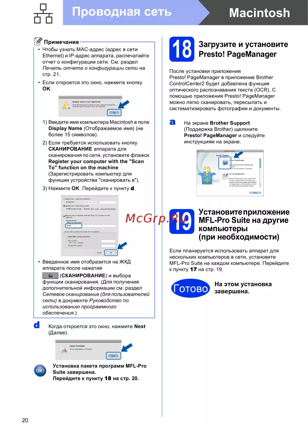 - Установите приложение mfl pro suite на другие компьютеры при необходимости p.20