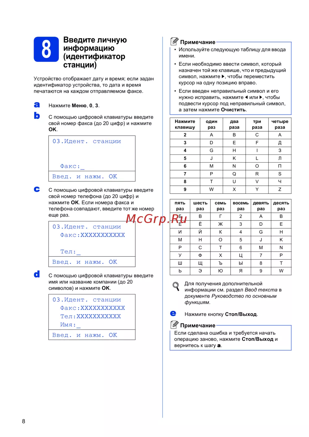 Brother MFC-8510DN — как ввести личную информацию для факса: пошаговая инструкция [8/24]