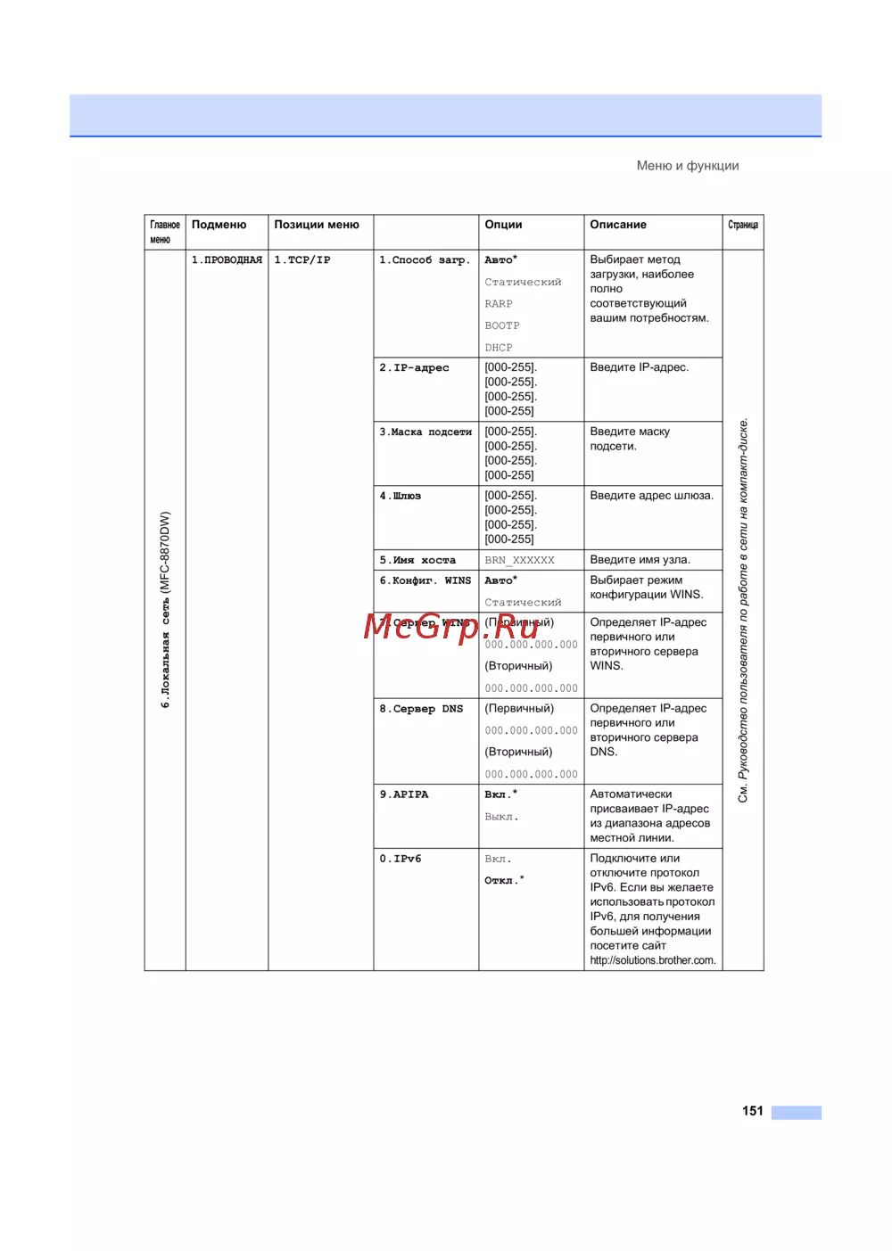 - Беспроводная сеть ethernet только mfc 8870dw p.180