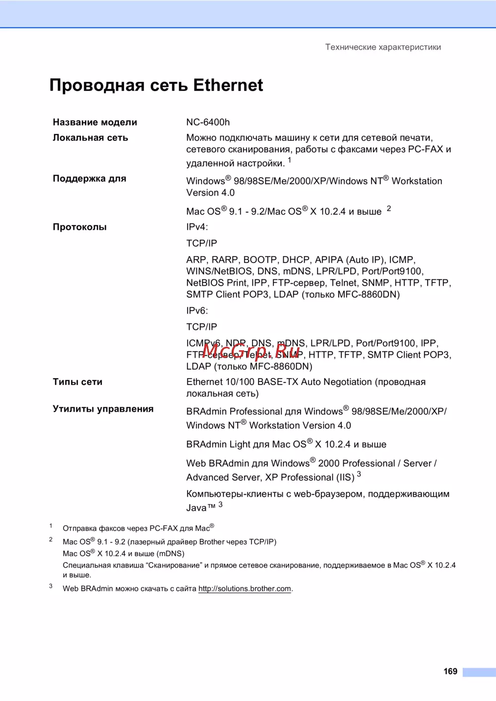 - Беспроводная сеть ethernet только mfc 8870dw p.180