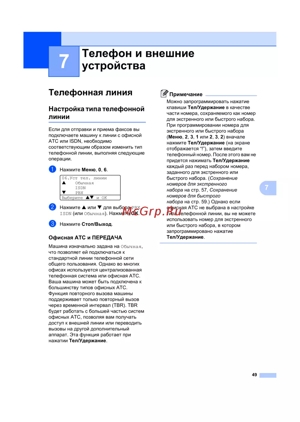 Brother MFC-8870DW — настройка телефонной линии для факсов и офисной АТС [59/191]