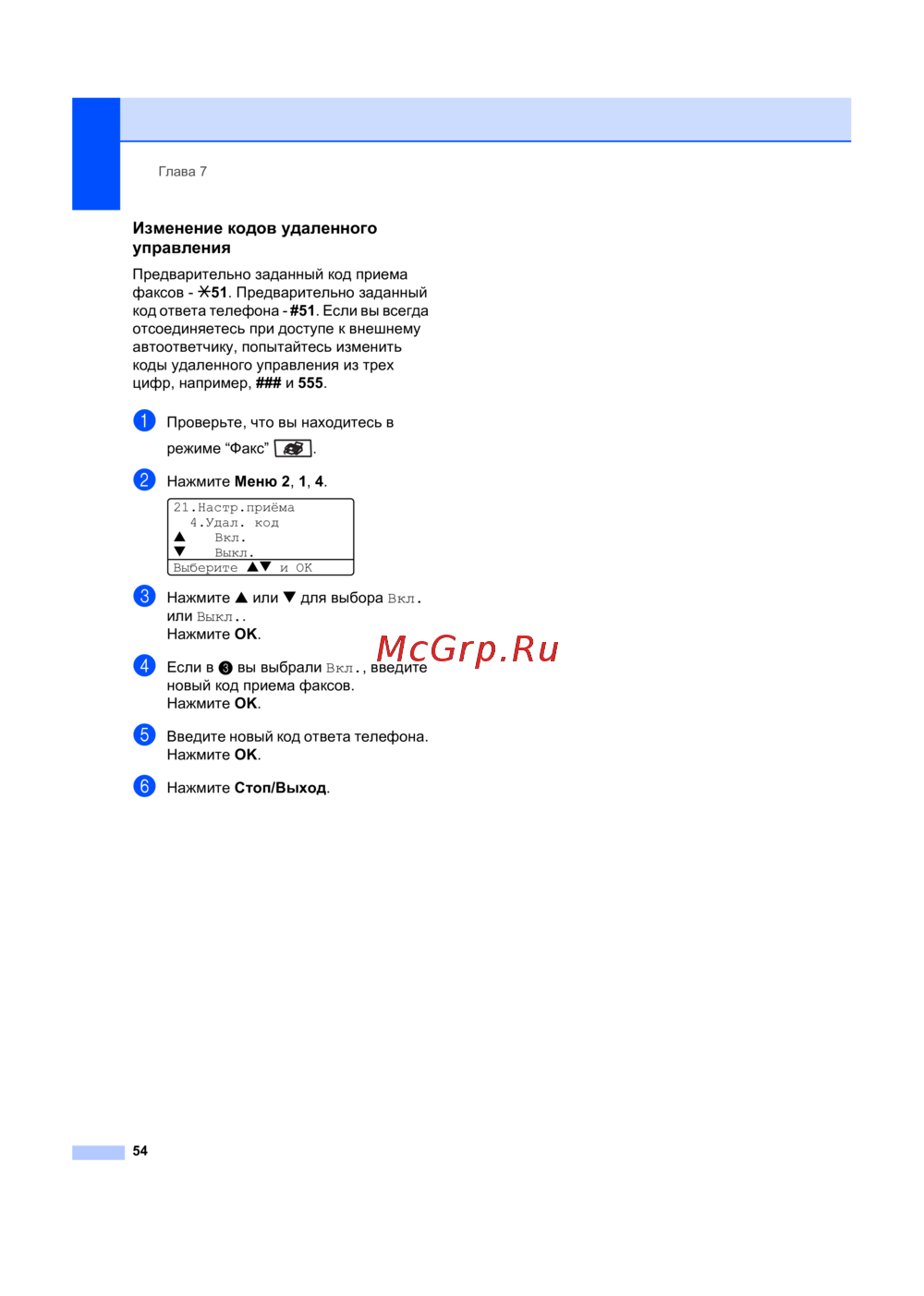 Brother MFC-8870DW — настройка кодов удаленного управления для факсов и автоответчиков [64/191]