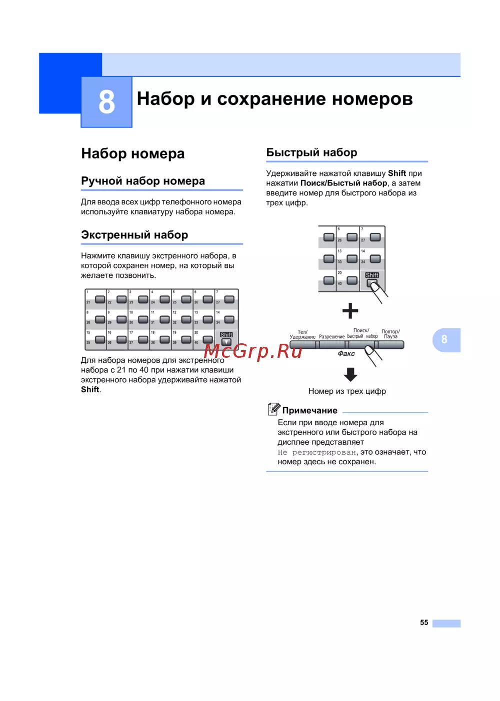 - Набор и сохранение номеров p.6