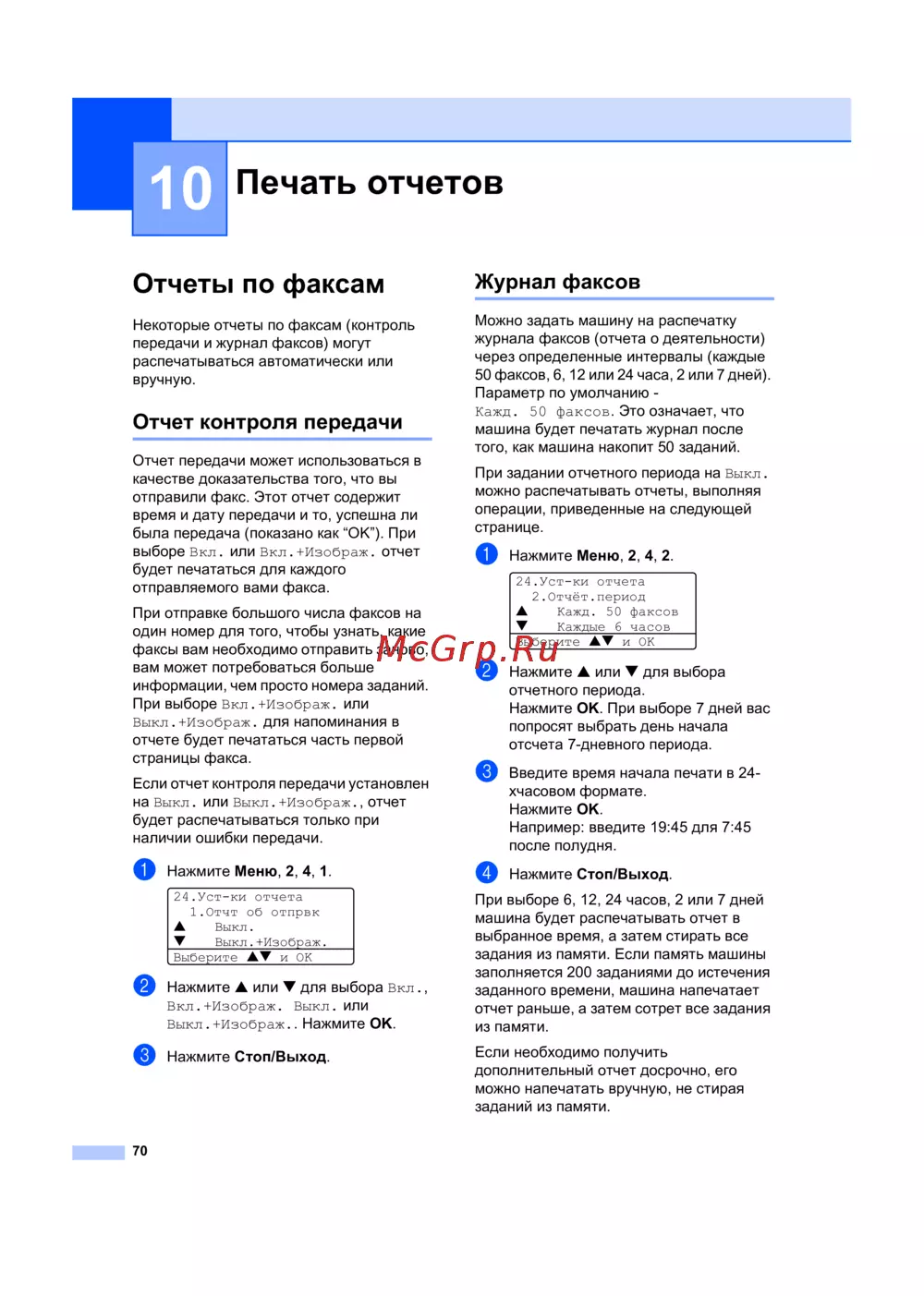 Brother MFC-8870DW — отчеты по факсам: автоматическая и ручная печать [80/191]