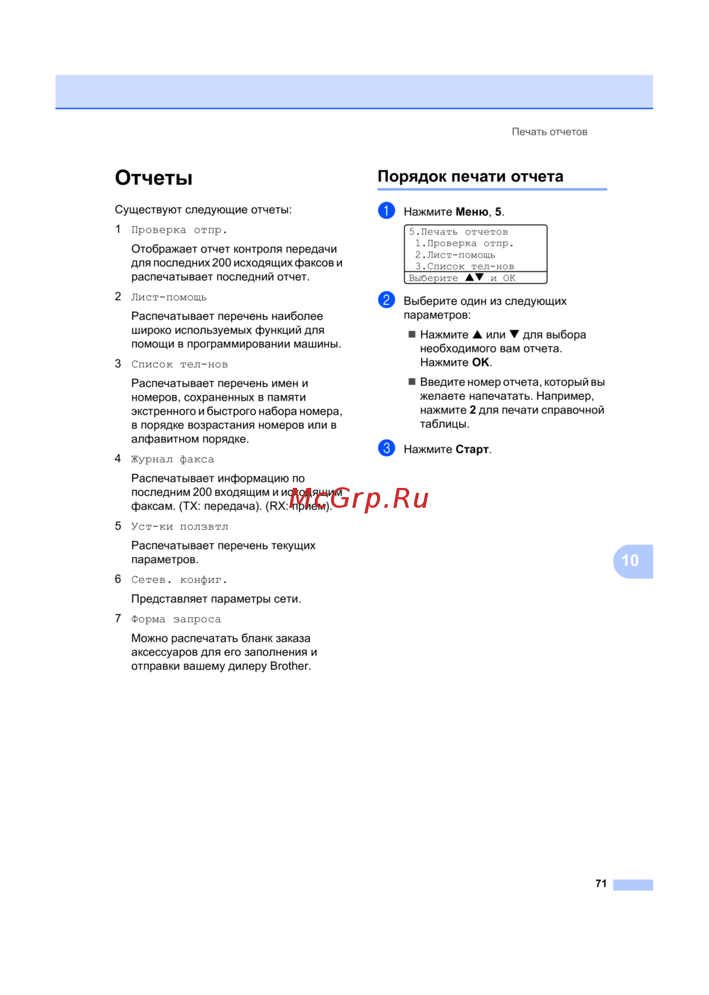 ![Brother MFC-8870DW [81/191] Порядок печати отчета](/views2/1027227/page81/bg51.png)