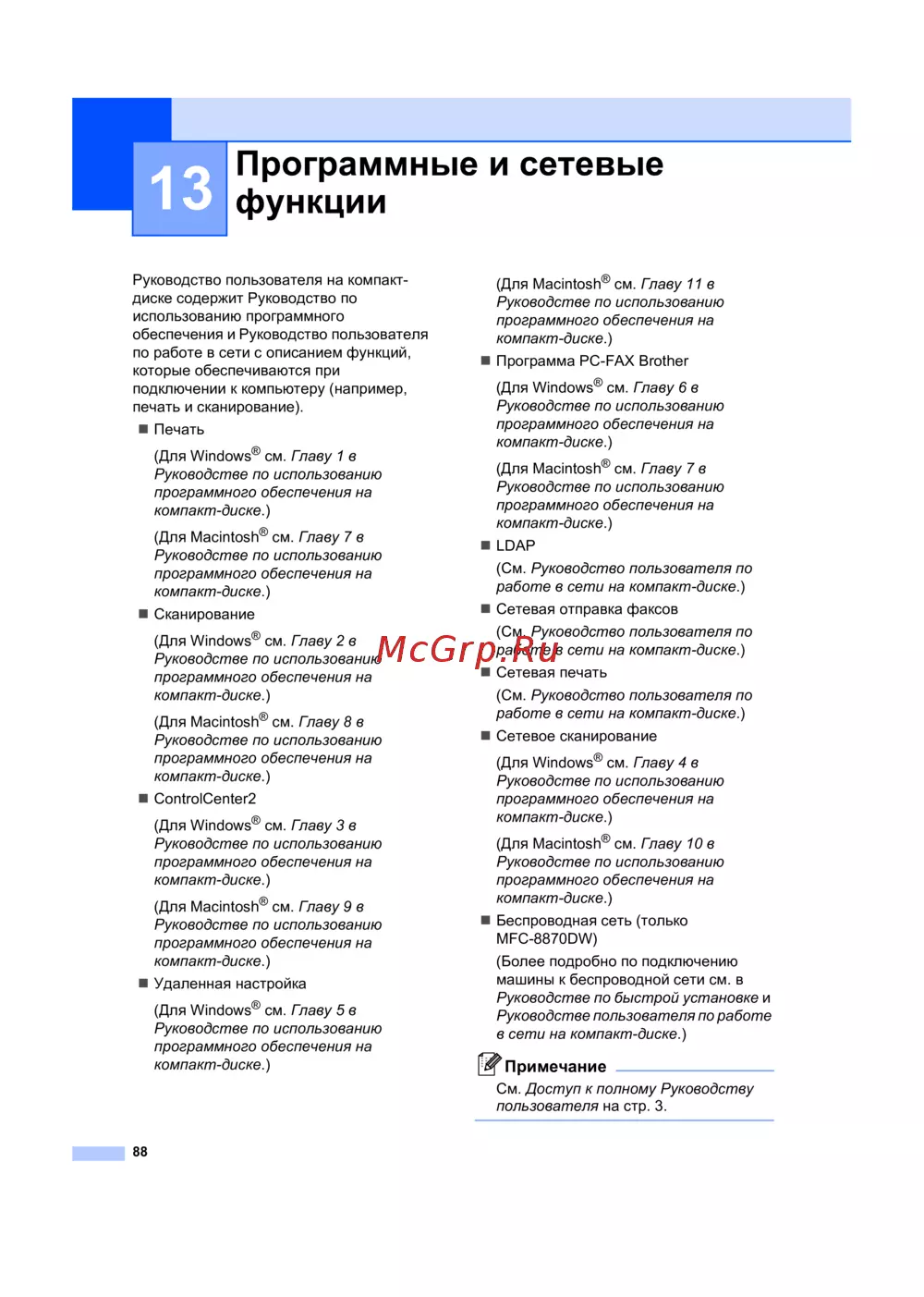 - Беспроводная сеть ethernet только mfc 8870dw p.180