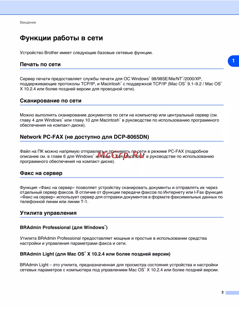 Brother MFC-8870DW — основные сетевые функции устройства для печати и сканирования [14/93]