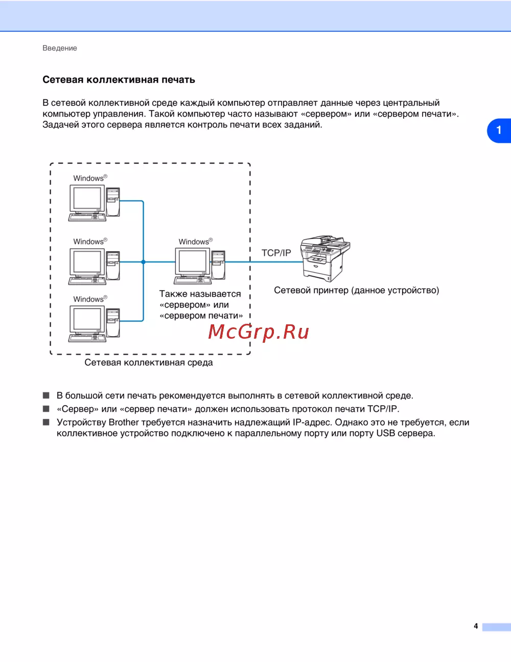 ■ В большой сети печать рекомендуется выполнять в сетевой коллективной среде.