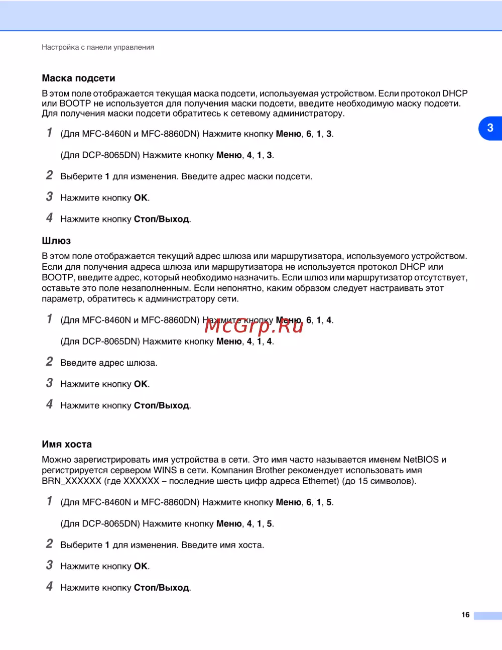 Brother MFC-8870DW — настройка маски подсети и шлюза через панель управления устройства [28/93]