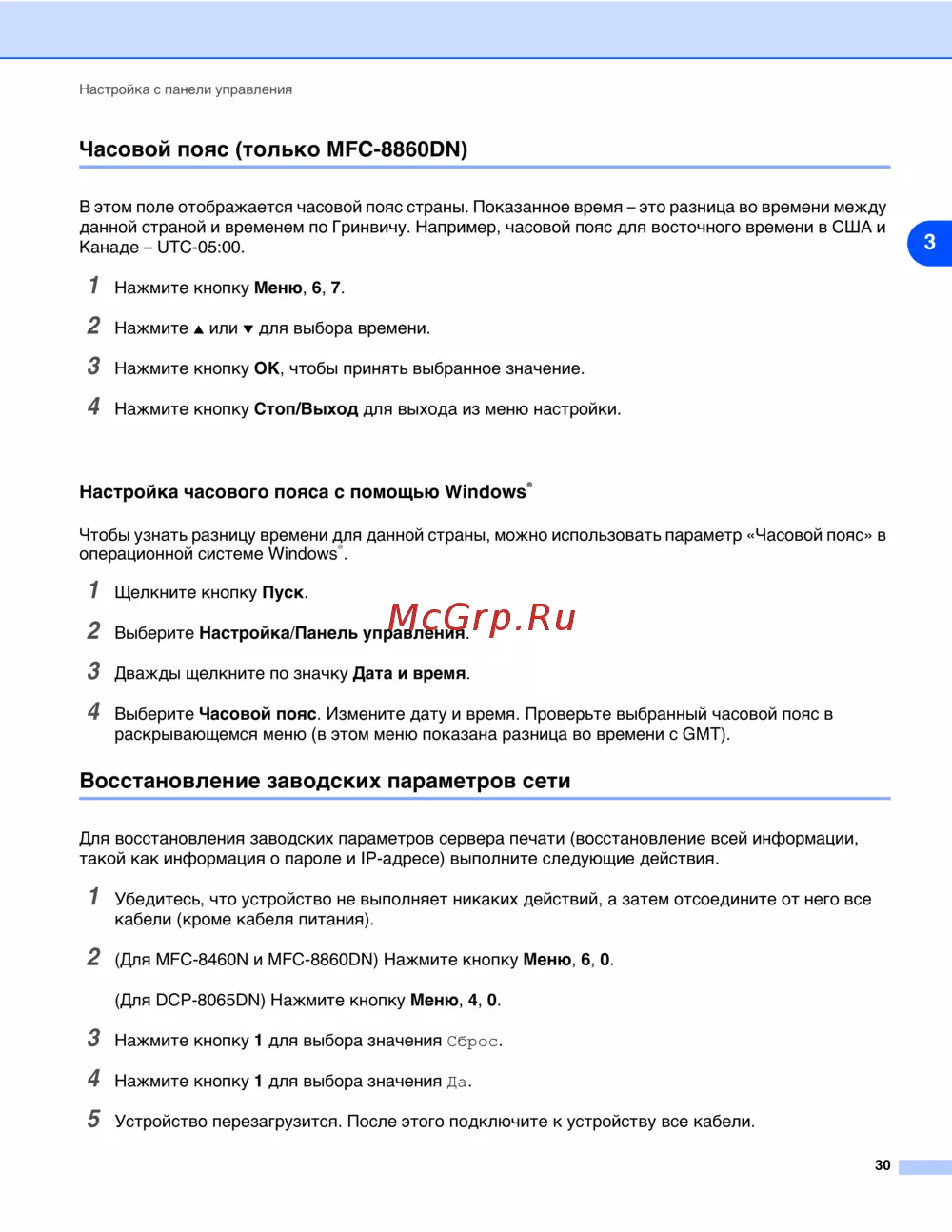 Brother MFC-8870DW — настройка часового пояса и восстановление заводских параметров [42/93]