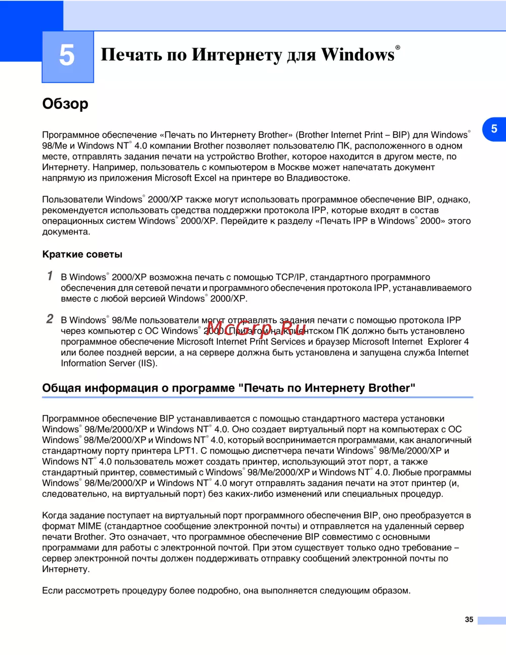 Программное обеспечение «Печать по Интернету Brother» (Brother Internet Print – BIP) для Windows