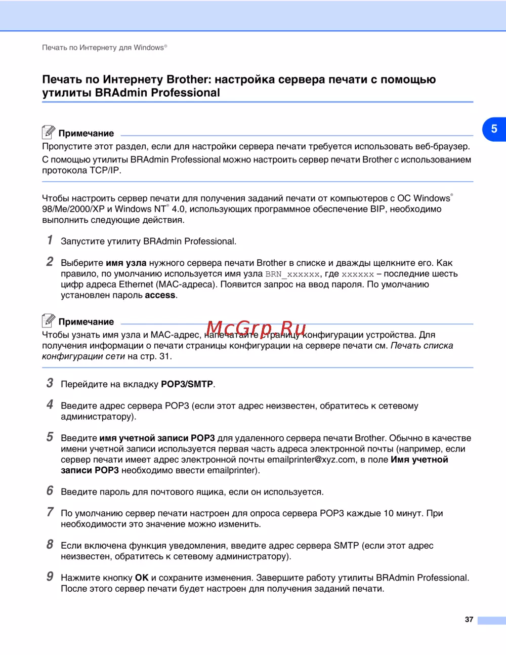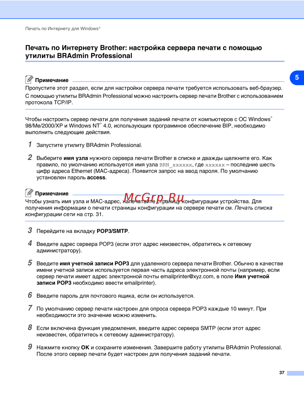 ![Brother MFC-8870DW [49/93] Печать по интернету brother настройка сервера печати с помощью утилиты bradmin professional](/views2/1469325/page49/bg31.png)