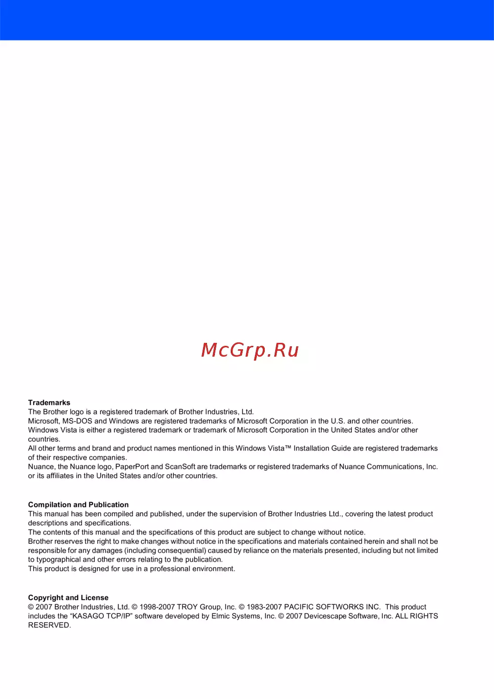 © 2007 Brother Industries, Ltd. © 1998-2007 TROY Group, Inc. © 1983-2007 PACIFIC SOFTWORKS INC. This product
