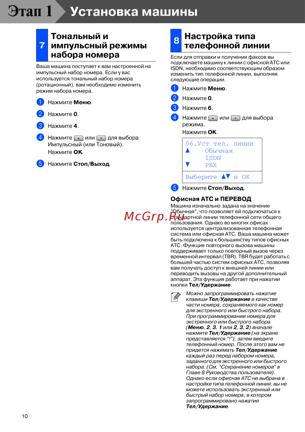 Brother MFC-8870DW — настройка телефонной линии и режимов набора номера [12/41]