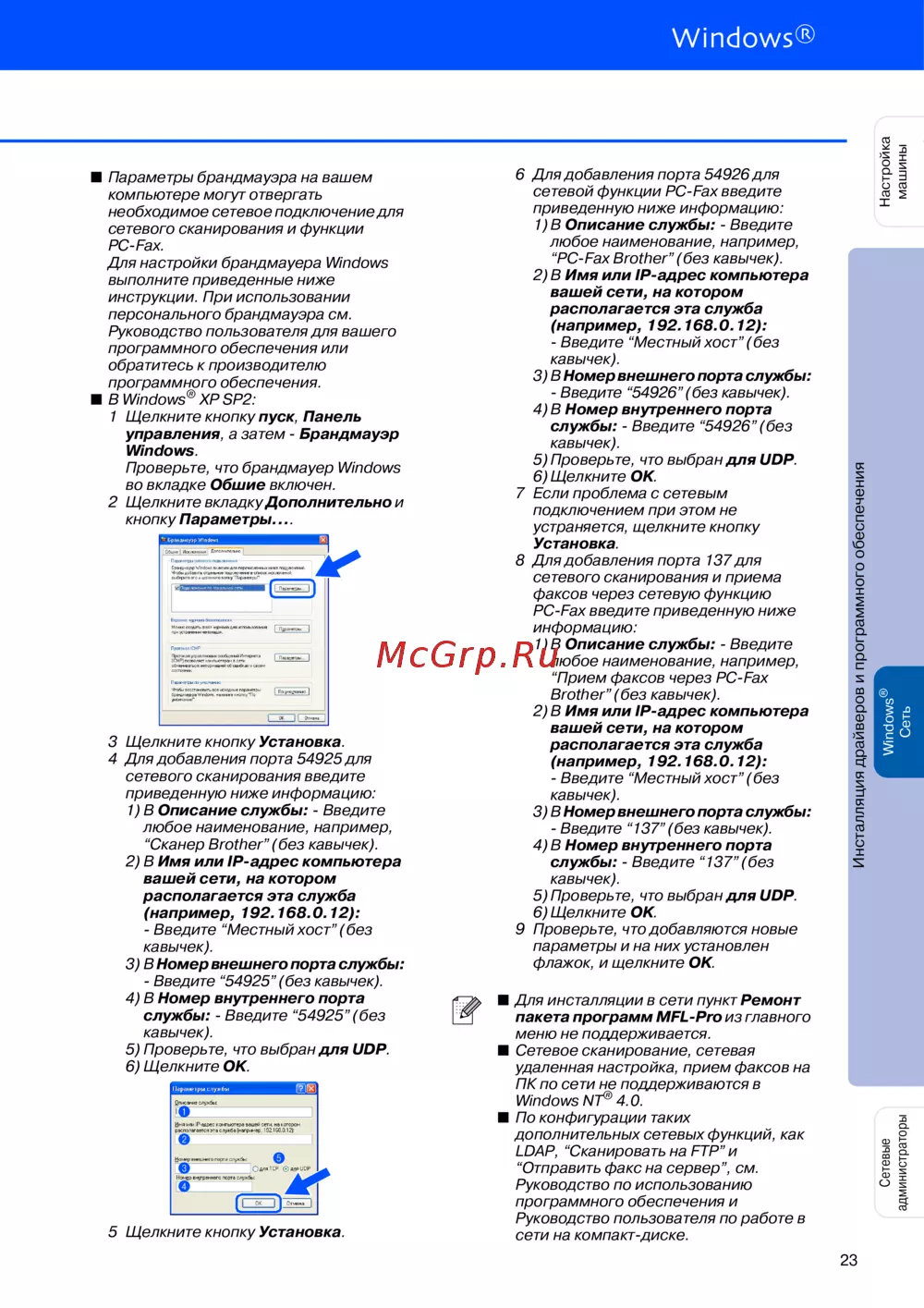 Brother MFC-8870DW — настройка брандмауэра для сетевого сканирования и факсов [25/41]