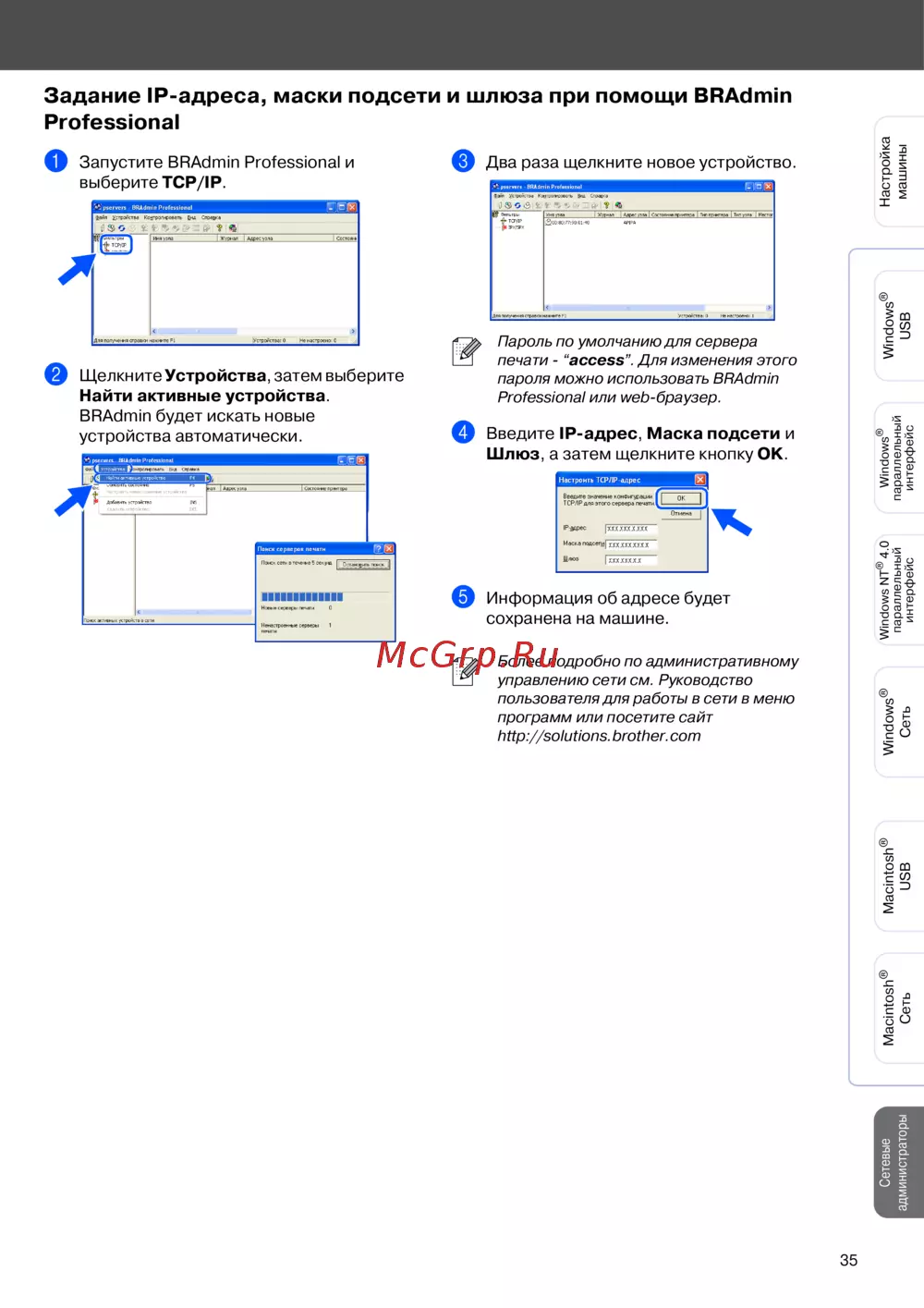 - Задание ip адреса маски подсети и шлюза при помощи bradmin professional p.37