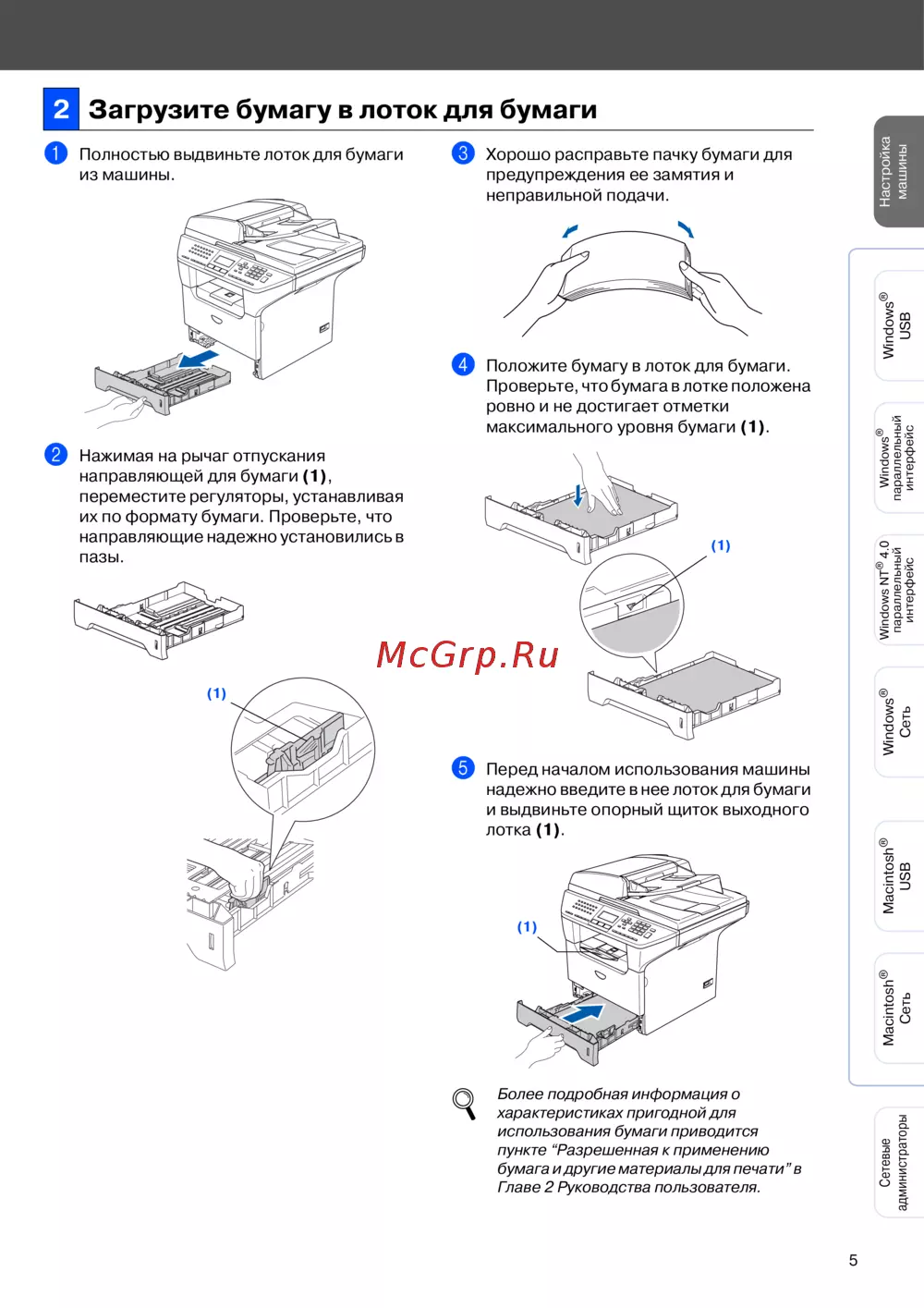 Brother MFC-8870DW — настройка лотка для бумаги в печатающих устройствах [7/41]
