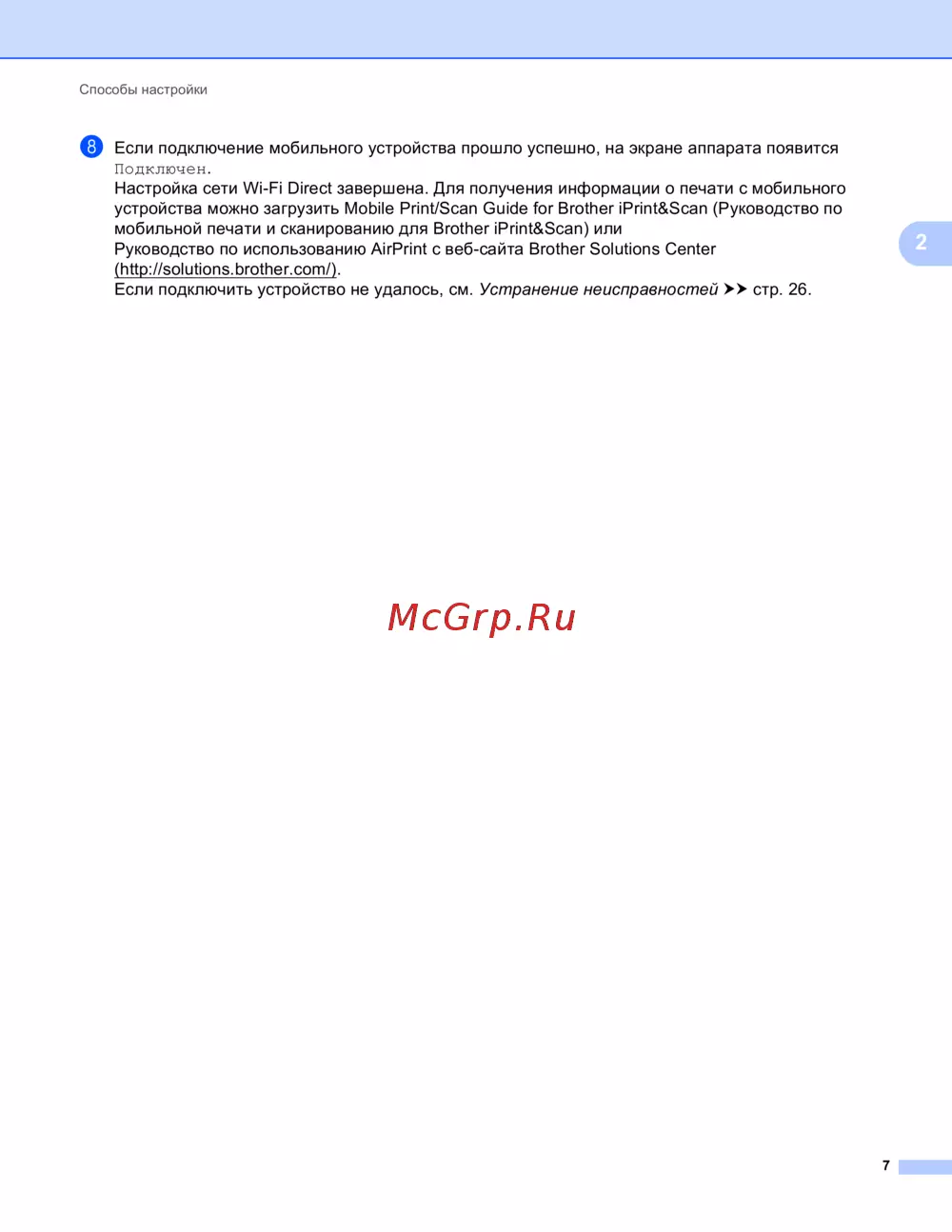 устройства можно загрузить Mobile Print/Scan Guide for Brother iPrint&Scan (Руководство по