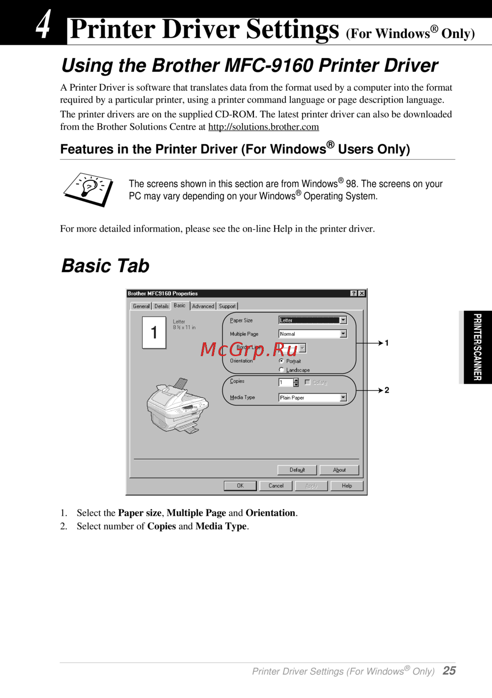 Brother MFC-9160 [31/96] Using the brother mfc 9160 printer driver