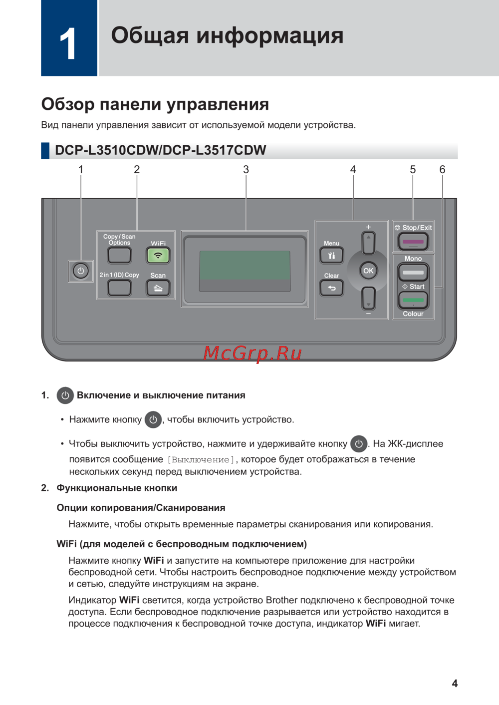 ![Brother DCP-L3550CDW [5/21] Обзор панели управления](/views2/1469579/page5/bg5.png)