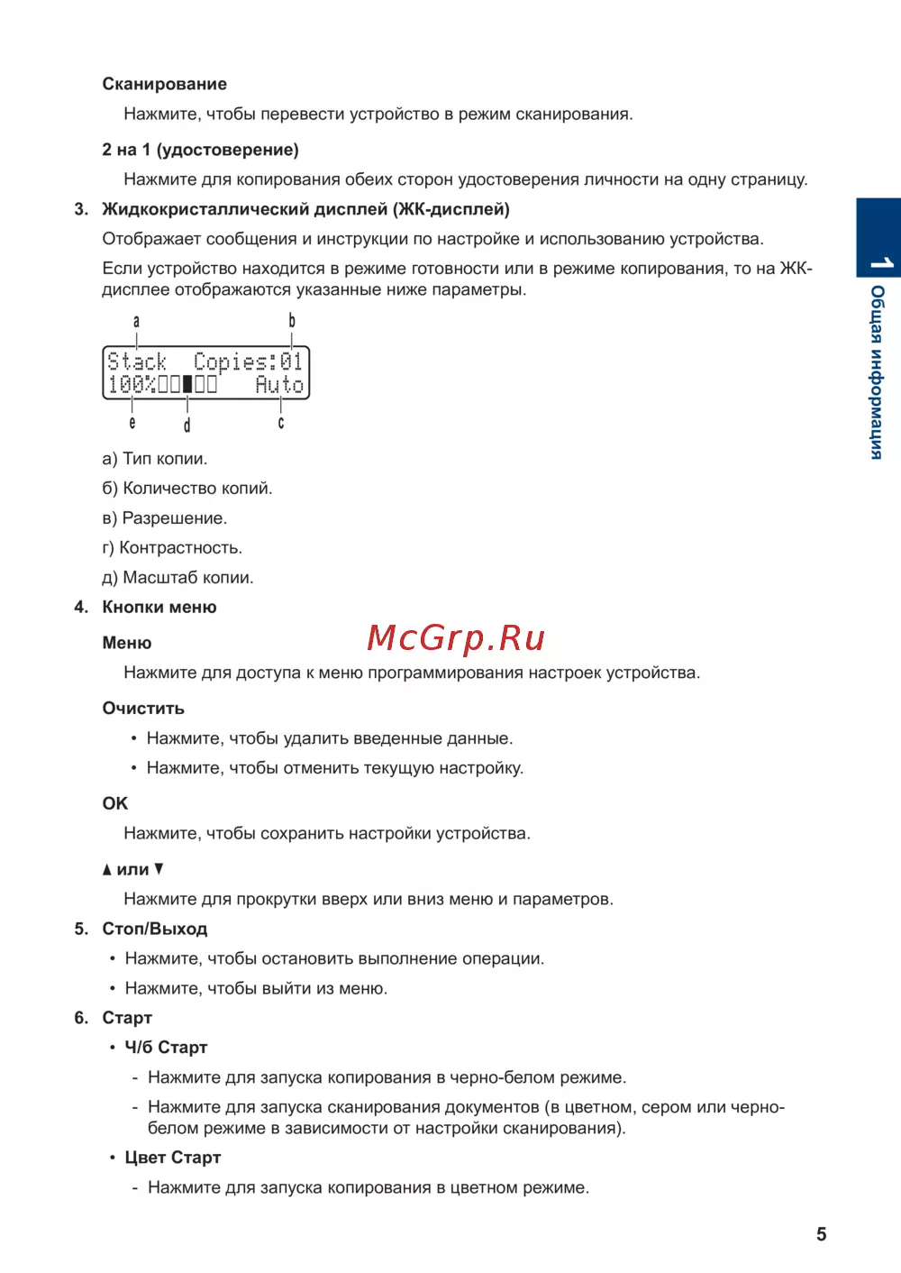 Если устройство находится в режиме готовности или в режиме копирования, то на ЖК-