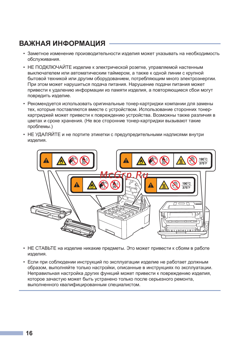 Brother MFC-L8650CDWИнструкции по технике безопасности -