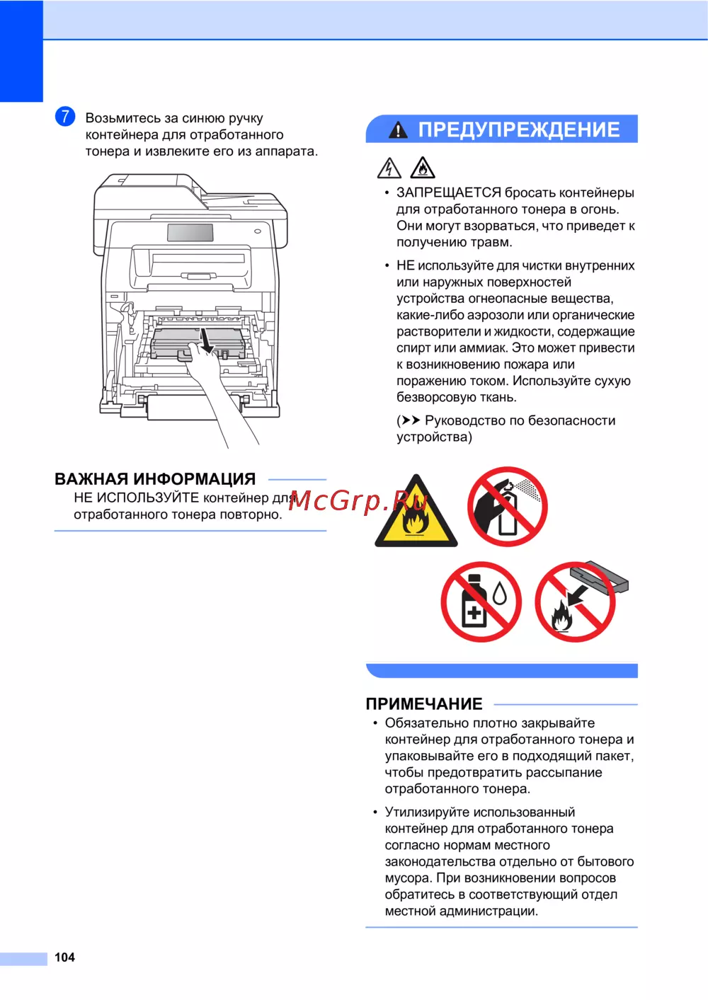 Brother MFC-L8850CDW — правила утилизации контейнеров для отработанного тонера [114/269]