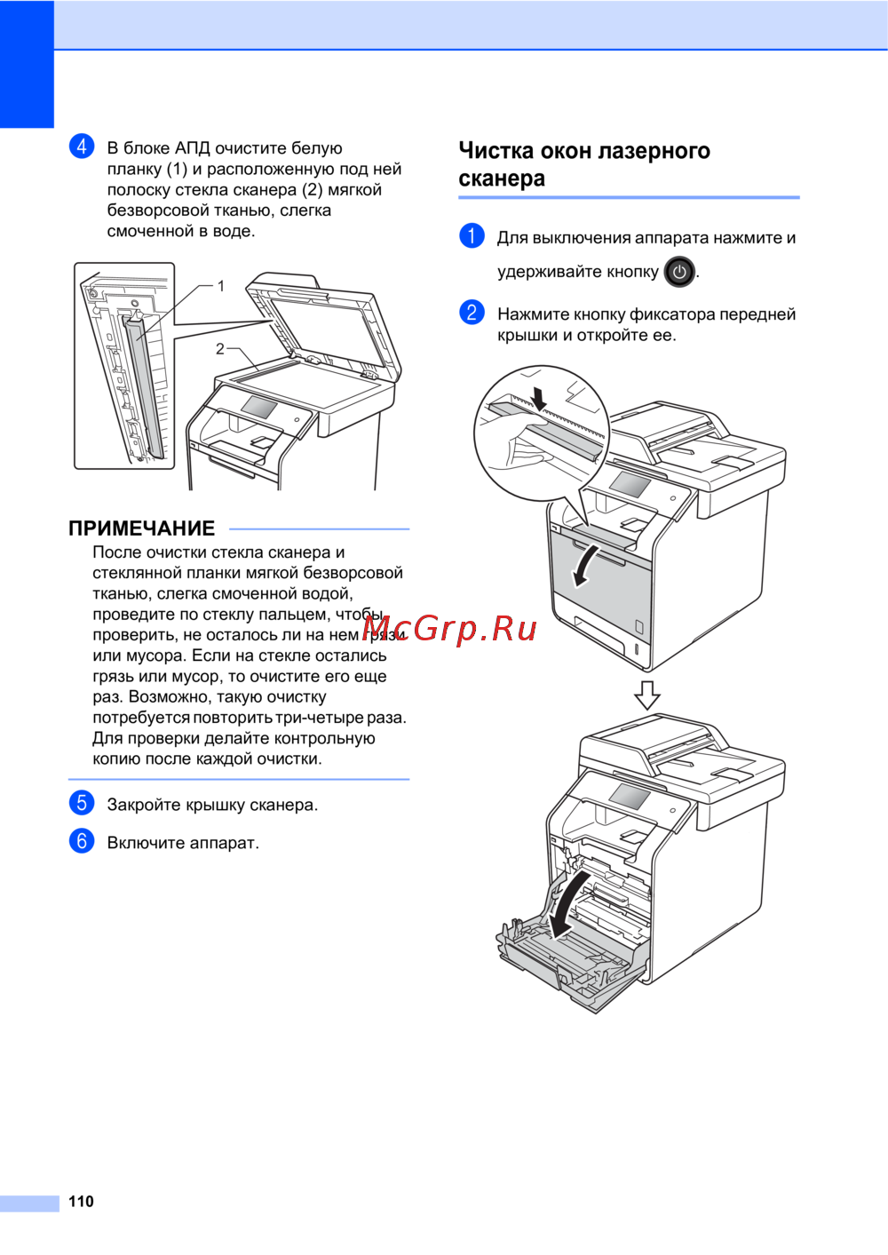 Brother MFC-L8850CDW — как правильно очистить стекло сканера для качественной работы [120/269]