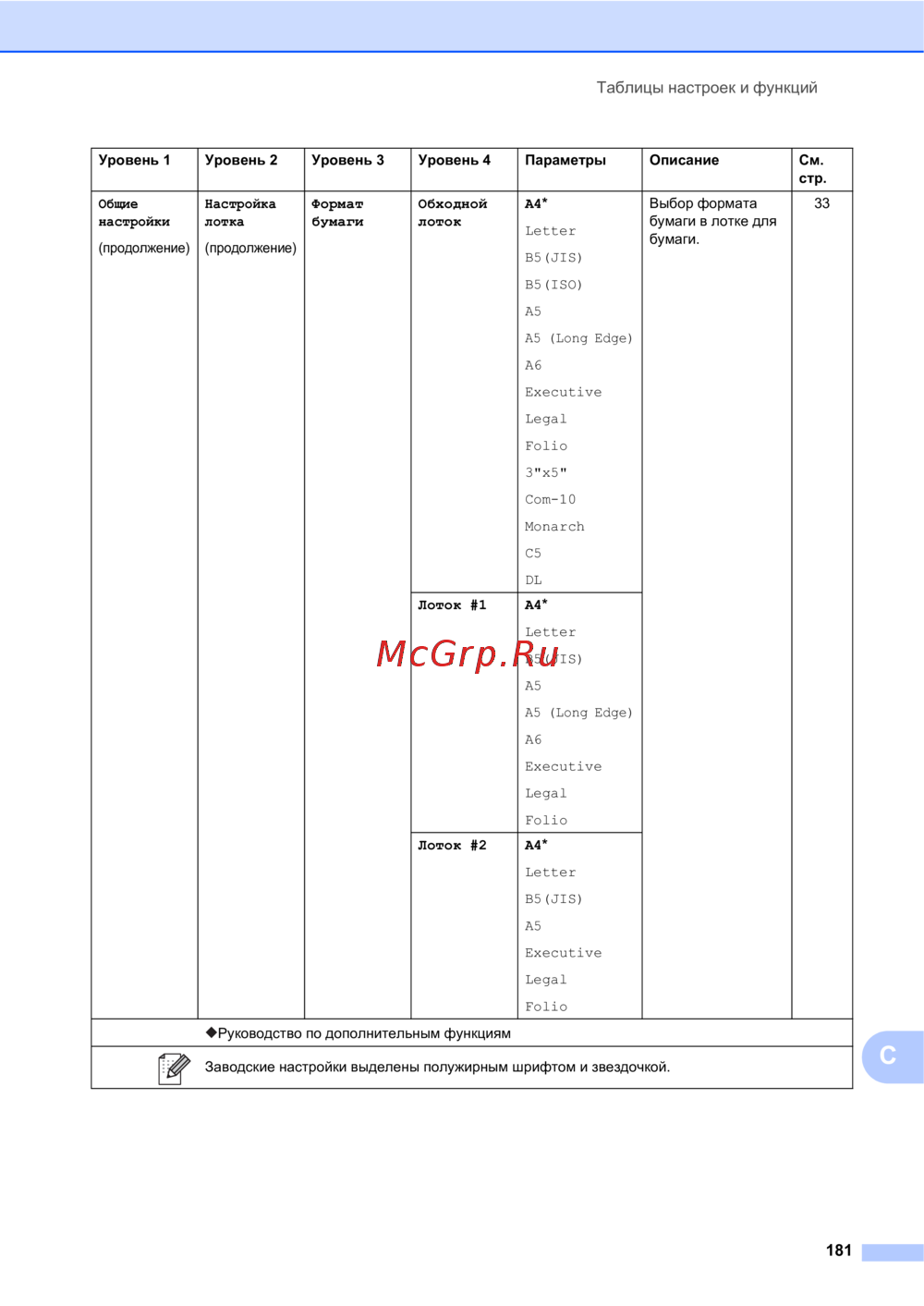 Brother MFC-L8850CDW — настройки и функции лотка для бумаги: форматы и параметры [191/269]