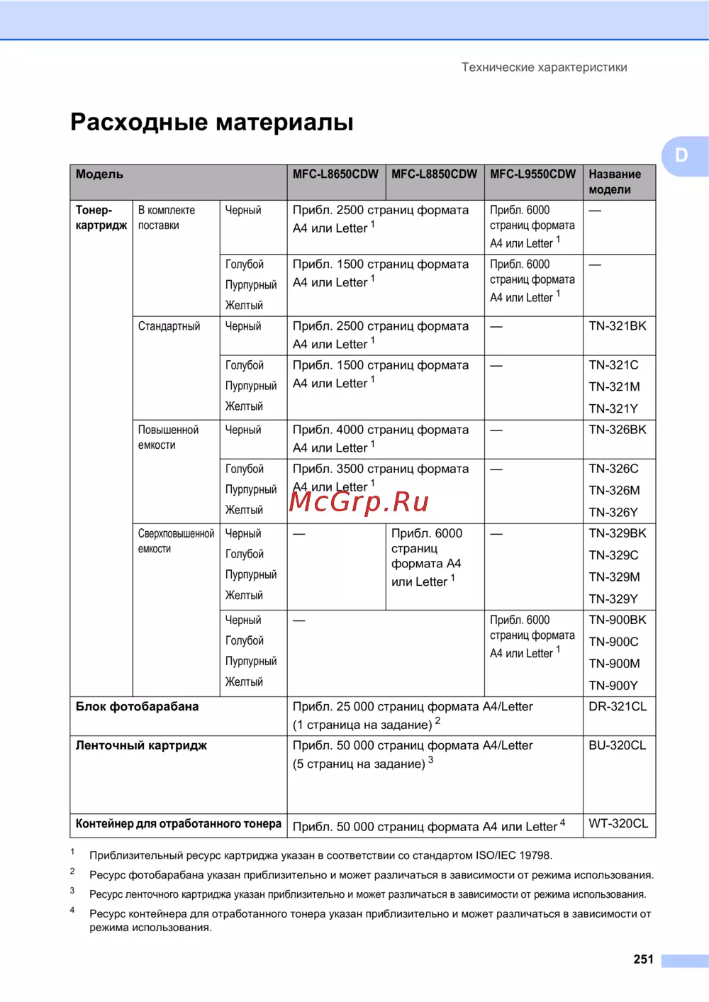 Brother MFC-L8850CDW [261/269] Расходные материалы