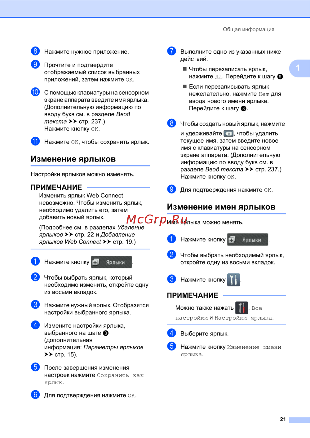 Brother MFC-L8850CDW — как изменить и настроить ярлыки на сенсорном экране устройства [31/269]